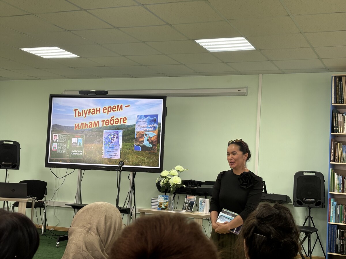 | Бөгөн Үҙәк район моделле китапханаһында яҙыусылар менән осрашыу кисәһе уҙҙы. "Тыуған ерем - илһам төбәге" , тип исемләнгән сара әҙәбиәт һөйөүселәрҙе йыйҙы. Йылы осрашыу барышында Ҡунысбаева Нурия Мөхтәр ҡыҙының " Сал тарихлы Сирбайым", Исмәғилева Гөлкәй Шәүкәт ҡыҙының "Туҡтап торсо ваҡыт!", Айытҡолова Айгөл Рәжәп ҡыҙының "Һағыныу" исемле яңы китаптары менән таныштыҡ. | |