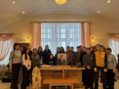 | В библиотеке-музее состоялась познавательная экскурсия для учащихся 8 В класса Башкирской республиканской гимназии-интерната №3 имени Муртазы Губайдулловича Рахимова города Кумертау. Основная часть мероприятия была посвящена знакомству с биографией первого президента республики Башкортостан Муртазы Губайдулловича Рахимова. Библиотекарь подробно рассказала о жизненном пути Муртазы Рахимова — от простого рабочего до руководителя одного из важнейших регионов России. Участники мероприятия узнали о его неоценимом вкладе в развитие республики, о периоде, который называют золотым веком в истории республики. Особое внимание было уделено достижениям периода его правления: масштабной газификации региона, строительству дорог и мостов, развитию здравоохранения, образования, науки и культуры. Также была отмечена деятельность благотворительного фонда «УРАЛ», которым Муртаза Губайдуллович руководил с 2010 года. Заключительная часть мероприятия прошла в формате познавательной викторины. Участники отвечали на вопросы о ключевых событиях в истории республики, связанных с деятельностью первого президента, демонстрировали свои знания о достижениях Муртазы Рахимова в развитие родного края. После экскурсии школьники вместе с классным руководителем Разилей Мидхатовной Файзуллиной оставили отзыв в книге для посетителей. | |