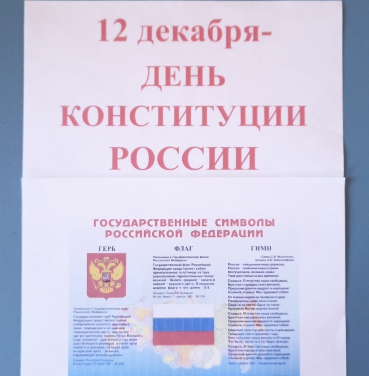 | У каждой страны есть отличительные знаки. Эти знаки называются символами государства. Государственные символы - это флаг, герб и гимн. Флаг - это символ свободы, независимости государства. Герб - это эмблема, изображаемая на флагах, монетах, печатях. Гимн - главная торжественная песня страны. | |